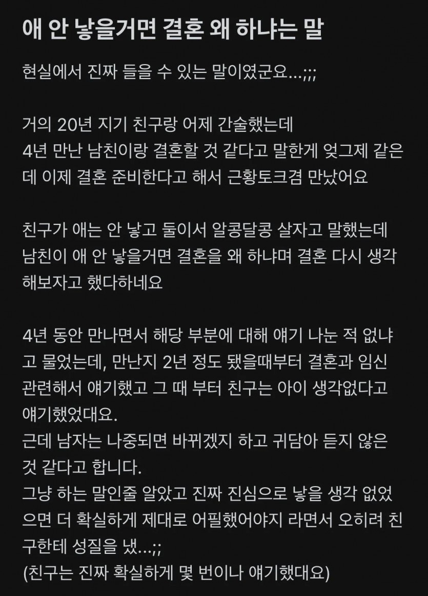애 안 낳을 거면 왜 결혼하냐는 말 작성자 정보 sos4168 작성 작성일 2026.01.29 15:23 컨텐츠 정보 4 조회 목록 답글 본문 관련자료 이전 3500년된 귀여운 이집트의 유리화장품 병 작성일 2026.01.29 17:06 다음 고양이가 되어버린 아저씨 작성일 2026.01.29 14:35 댓글 0 등록된 댓글이 없습니다. Select File Upload File 목록 답글