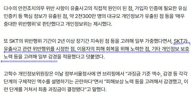 다만 쿠팡쪽에서 후속 대응을 하는 중이라 skt처럼 감경 사유가 인정이 되면 skt가 최대 3% 산정금액이었던 3천억원에서 절반 가까이 줄어든 걸로 보아 쿠팡역시 후속 조치에 따라 실제 부과되는 금액은 더 떨어 질 것으로 보임.