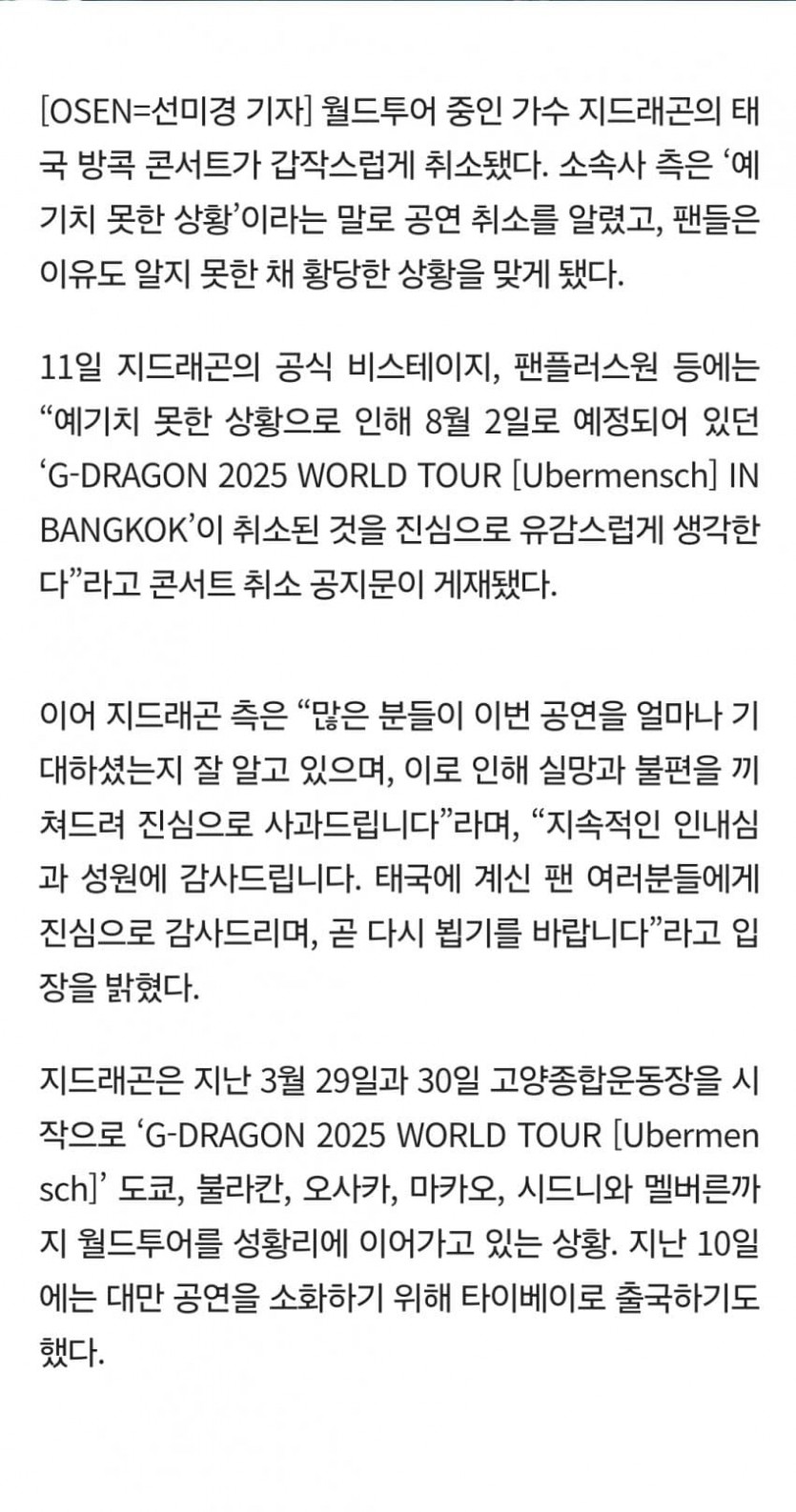 예기치 못한 상황 지드래곤, 참 예의 없는 방콕 공연 취소 작성자 정보 두마리치킨7777 작성 작성일 2025.12.28 01:14 컨텐츠 정보 3 조회 목록 답글 본문 관련자료 이전 잘 때 몸이 회복하는 신비한 과정 ㄷㄷ 작성일 2025.12.28 01:32 다음 백종원 , 먹는거엔 타협 안해요 작성일 2025.12.28 00:38 댓글 0 등록된 댓글이 없습니다. Select File Upload File 목록 답글
