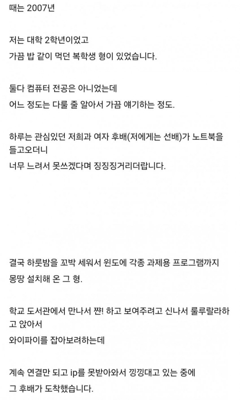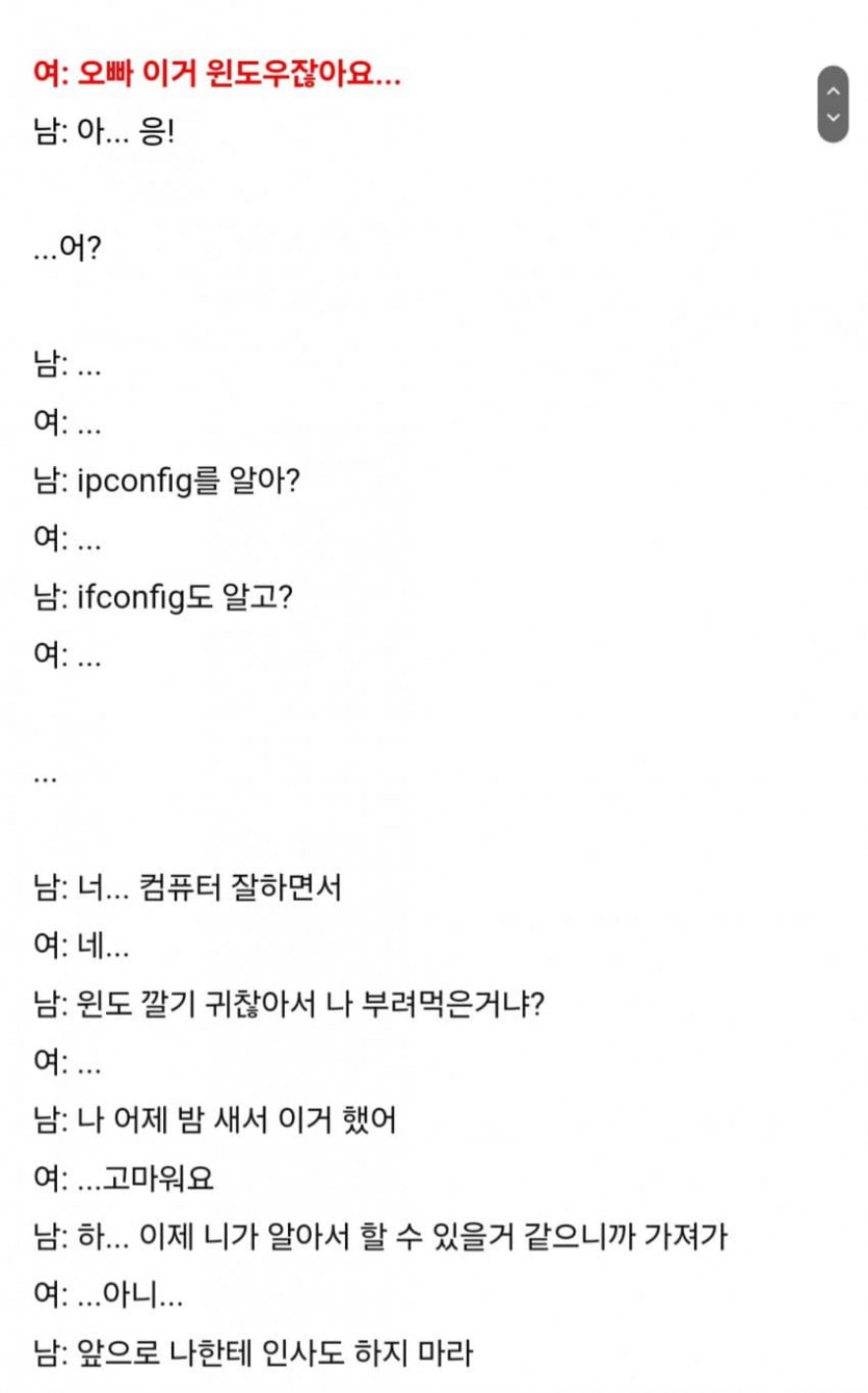 싱글벙글 여자후배 노트북 고쳐준 썰 작성자 정보 지석진 작성 작성일 2025.12.28 21:21 컨텐츠 정보 2 조회 목록 답글 본문 관련자료 이전 19세기 캐나다 선교사가 기록한 조선인들의 모습 작성일 2025.12.28 23:35 다음 코스프레가 취미였던 황제 작성일 2025.12.28 20:13 댓글 0 등록된 댓글이 없습니다. Select File Upload File 목록 답글