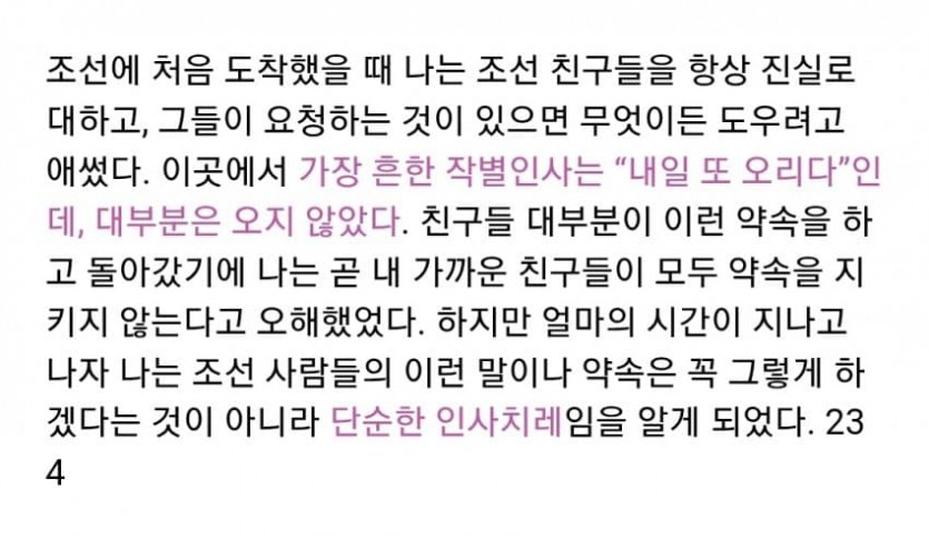 19세기 캐나다 선교사가 기록한 조선인들의 모습 작성자 정보 무조건상한가당첨 작성 작성일 2025.12.28 23:35 컨텐츠 정보 1 조회 목록 답글 본문 한국식 나이를 결국 끝까지 이해하지 못하는 게일 (ㅋㅋㅋ) 공동체주의적 사회를 처음 접하고 신기해하며 펄펄 끓는 온돌에 고통스러워하기도함 메주 냄새도 맡고 관련자료 이전 포기 할때마다 돈 작성일 2025.12.29 01:05 다음 싱글벙글 여자후배 노트북 고쳐준 썰 작성일 2025.12.28 21:21 댓글 0 등록된 댓글이 없습니다. Select File Upload File 목록 답글