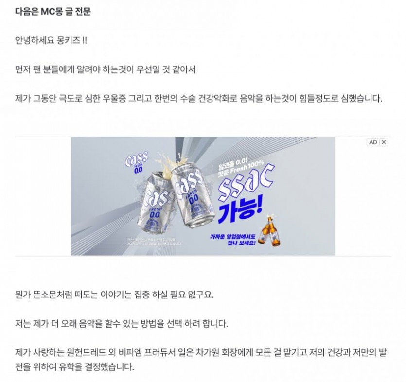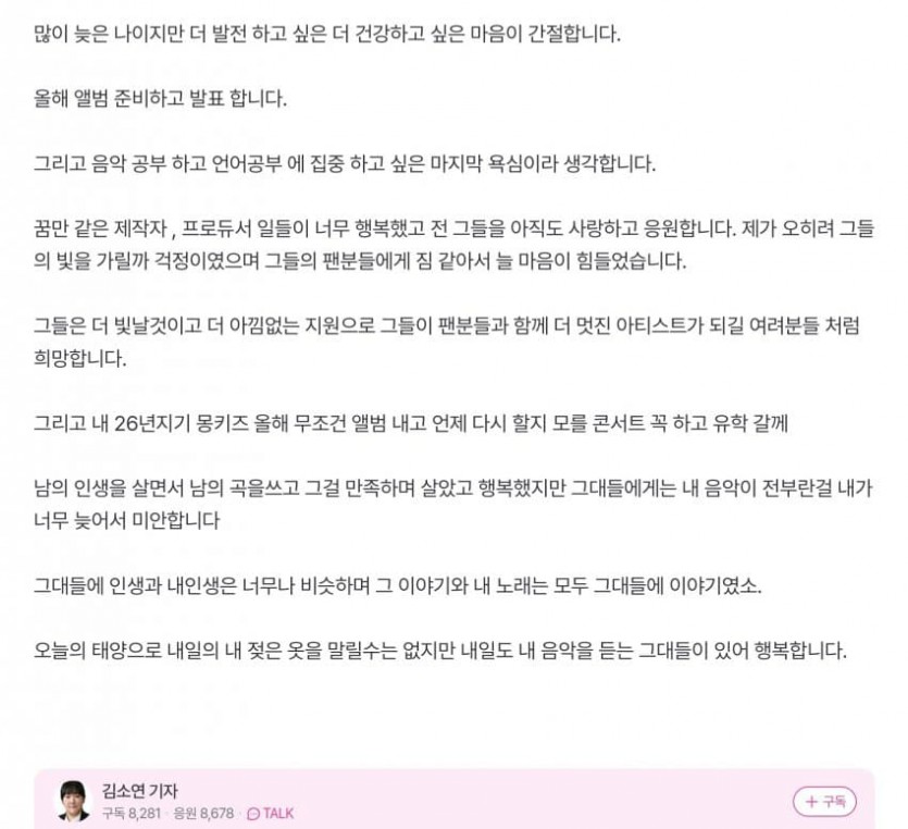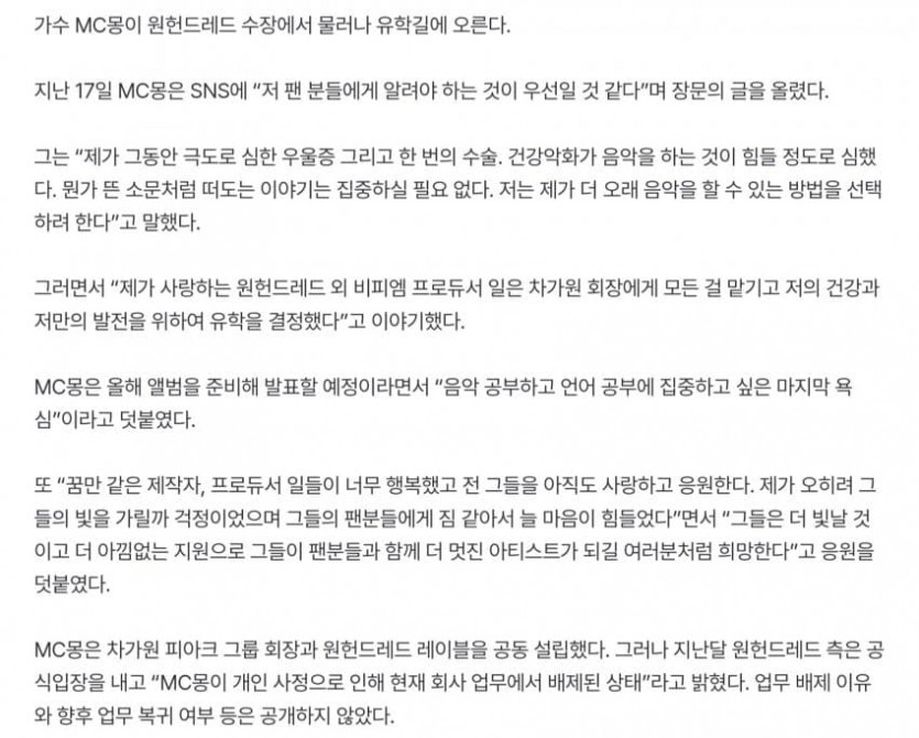 MC몽 원헌드레드 떠나서 유학길에 오른다 작성자 정보 하세우스 작성 작성일 2025.12.29 03:01 컨텐츠 정보 1 조회 목록 답글 본문 관련자료 이전 현재 폭망한 콘크리트유토피아 후속작 ㄷㄷ 작성일 2025.12.29 03:16 다음 제일런 타이슨이 캐브스의 접근 방식에 대해 언급하다 작성일 2025.12.29 02:19 댓글 0 등록된 댓글이 없습니다. Select File Upload File 목록 답글
