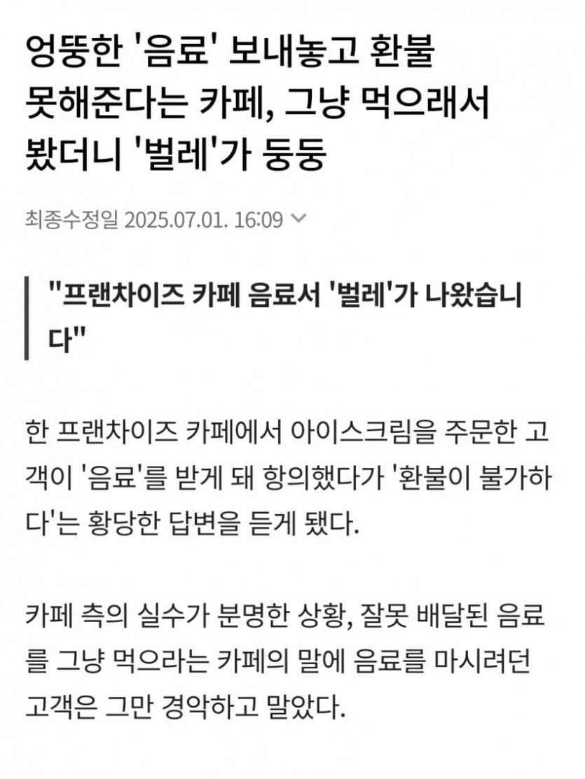 오배송 메뉴 환불 못해준다는 카페 논란 작성자 정보 아부지날라간다 작성 작성일 2025.07.14 03:17 컨텐츠 정보 3 조회 목록 답글 본문 관련자료 이전 퀀텀코리아 2025 전 세계 17개국 전문가 모여 양자과학기술 협력 방안 논의 작성일 2025.07.14 04:08 다음 저녁은 족발로 가요옷 작성일 2025.07.14 02:51 댓글 0 등록된 댓글이 없습니다. Select File Upload File 목록 답글