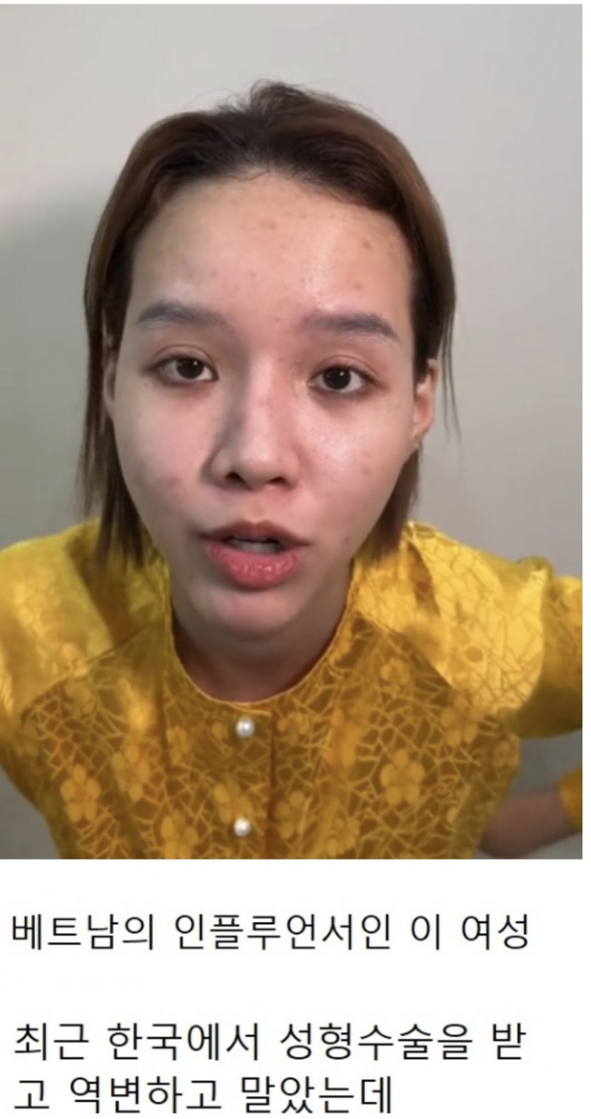 한국에서 성형후, 인생이 바뀐 베트남 여성 작성자 정보 한강열차 작성 작성일 2025.11.11 17:46 컨텐츠 정보 3 조회 목록 답글 본문 이래서 한국으로 원정성형을 받으러 오는건가... 관련자료 이전 어른들이 먹기 싫어하는 밥 작성일 2025.11.11 18:09 다음 아직도 호불호 매우 크게 갈리는 수술 작성일 2025.11.11 16:28 댓글 0 등록된 댓글이 없습니다. Select File Upload File 목록 답글