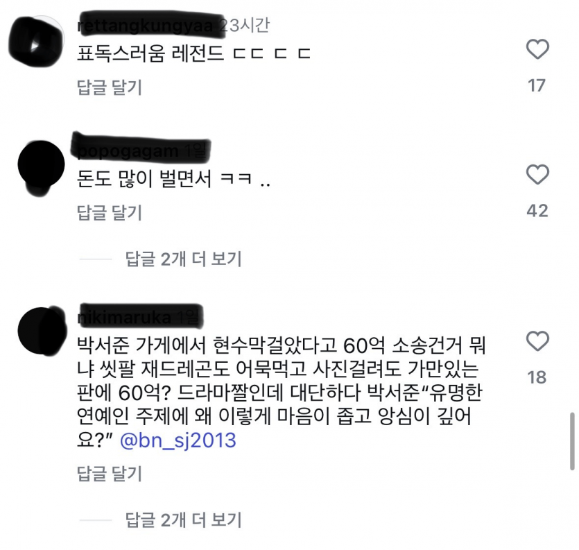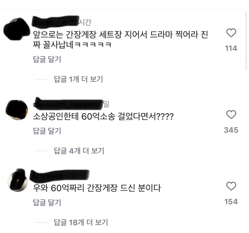 간장게장집 고소했다고 욕먹는 박서준 인스타 댓글 상황 작성자 정보 오버매앤 작성 작성일 2025.11.15 19:56 컨텐츠 정보 5 조회 목록 답글 본문 박서준이 드라마 촬영했던 식당에서 그의 이름을 무단 사용해 ‘박서준이 먹고 반한 간장게장’이라는 문구의 현수막을 수년간 광고에 사용함박서준 측이 광고 중단을 요청했지만, 가게는 반복적으로 무시하며 다시 게시이후 연락까지 피하자, 박서준이 결국 법적 대응‘60억 소송설’은 과장된 이야기이며 실제 제기한 손해배상 청구액은 6000만원법원은 박서준 측 손을 들어주며 가게 측에 500만원 배상 판결 관련자료 이전 실시간 강릉휴게소....미쳤다;;;; 밥먹다 사람들 얼마나 놀랬을까;; 작성일 2025.11.15 20:06 다음 강형욱피셜 키울 때 난이도라는게 없는 견종 작성일 2025.11.15 19:30 댓글 0 등록된 댓글이 없습니다. Select File Upload File 목록 답글