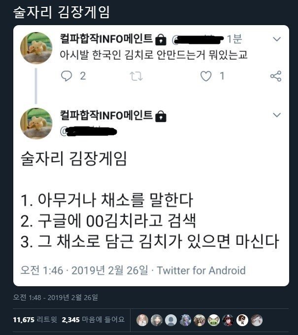 난이도 최상 술자리 게임 작성자 정보 멀봐이눔아 작성 작성일 2025.12.15 18:34 컨텐츠 정보 3 조회 목록 답글 본문 관련자료 이전 르세라핌 중국 팬사인회 취소사유 ㅋㅋㅋㅋㅋㅋ.jpg 작성일 2025.12.15 19:04 다음 콘치즈에 맥주한잔 작성일 2025.12.15 18:14 댓글 0 등록된 댓글이 없습니다. Select File Upload File 목록 답글