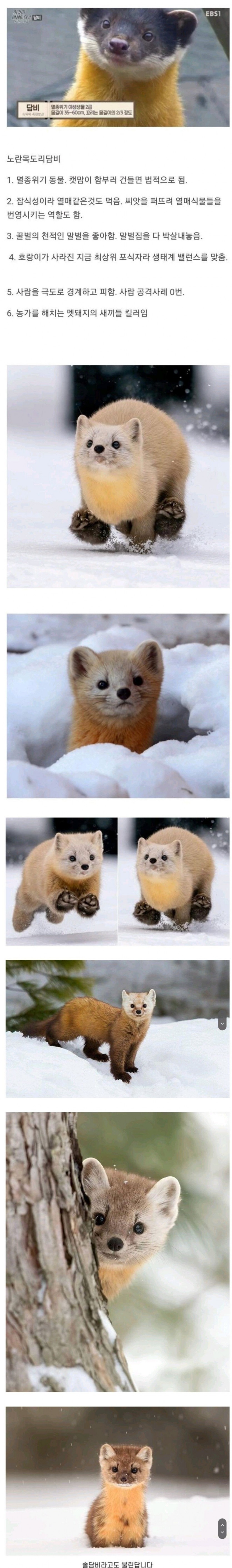 대한민국 생태계 1티어 생물 작성자 정보 축당첨되어보쟈 작성 작성일 2025.11.29 09:18 컨텐츠 정보 27 조회 목록 답글 본문 노란목도리 담비가 생각보다 엄청큼. 발도 커. 작은 종인 검은담비라고 있는데 이 종은 남한에선 멸종했고 북한쪽에 있다고 함. 관련자료 이전 한강대교 근황 ㄷㄷ 작성일 2025.11.29 09:34 다음 야구 없으니까 뇌도 꺼짐ㅋ 작성일 2025.11.29 08:38 댓글 0 등록된 댓글이 없습니다. Select File Upload File 목록 답글