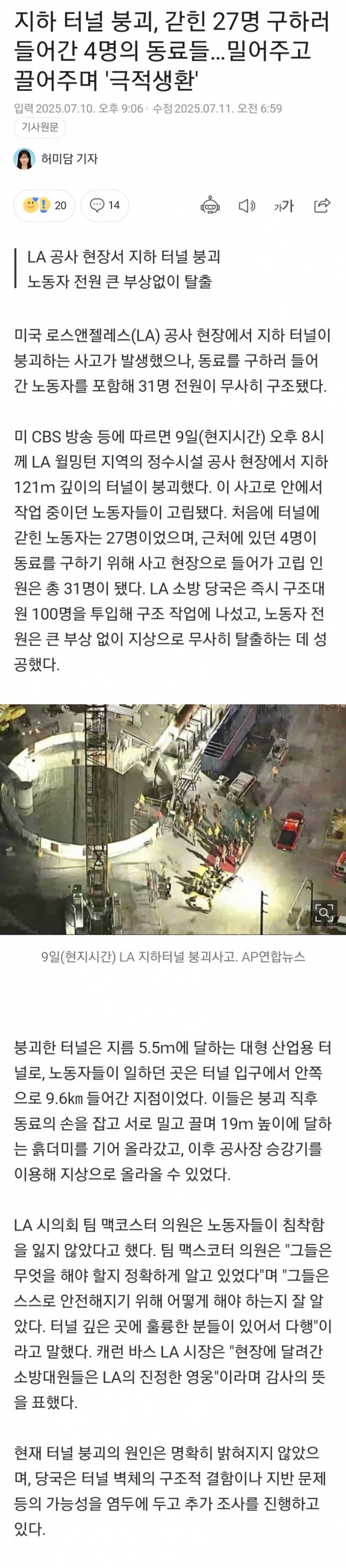 지하 터널 붕괴, 갇힌 27명 극적생환 작성자 정보 쇼잉더 작성 작성일 2025.11.28 17:33 컨텐츠 정보 28 조회 목록 답글 본문 관련자료 이전 다시봐도 신기한 기안84 덱스 극과극 여행 짐가방 작성일 2025.11.28 17:49 다음 요즘 국야 점수 어케 된 거냐 진짜ㅋㅋ 작성일 2025.11.28 15:55 댓글 0 등록된 댓글이 없습니다. Select File Upload File 목록 답글