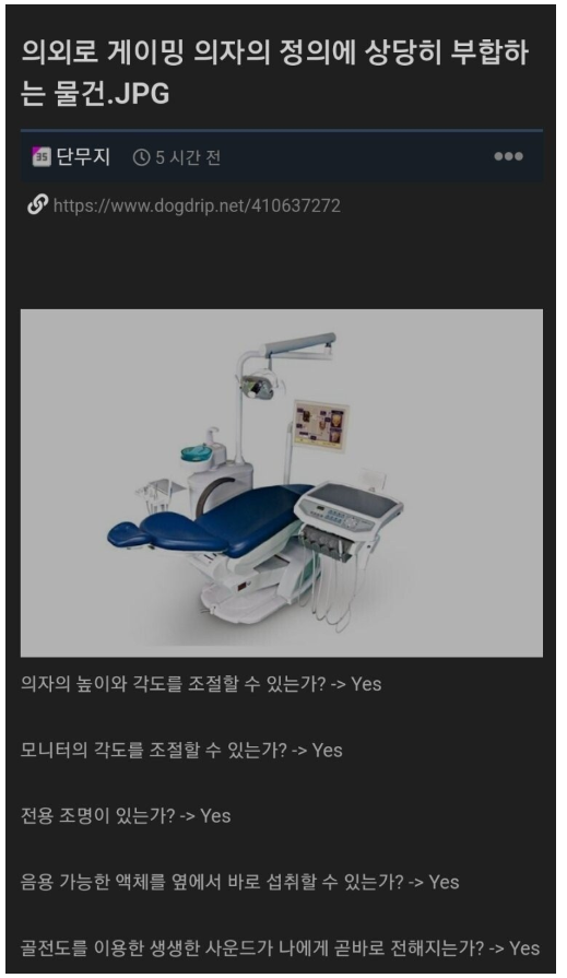의외로 게이밍 의자에 적합한 물건 작성자 정보 키스틱 작성 작성일 2024.02.22 22:38 컨텐츠 정보 719 조회 목록 답글 본문 관련자료 이전 중고나라 뱀.. 작성일 2024.02.23 02:28 다음 일본 매체 손흥민 이강인 충돌 제보, 클린스만 정몽규 회장일수도 작성일 2024.02.22 22:27 댓글 0 등록된 댓글이 없습니다. Select File Upload File 목록 답글