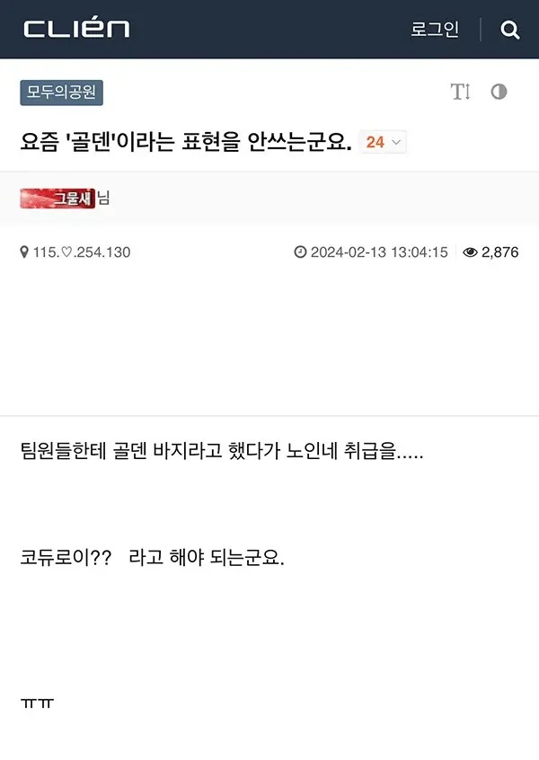 현재 반응갈리는 나이 판독기 패션용어.jpg 작성자 정보 wow1 작성 작성일 2024.02.19 17:46 컨텐츠 정보 759 조회 목록 답글 본문 관련자료 이전 국제 튀김 순위 1위 작성일 2024.02.19 18:02 다음 근로소득세를 보고 있자면 왜 근로소득세만 올랐을가요? 작성일 2024.02.19 16:10 댓글 0 등록된 댓글이 없습니다. Select File Upload File 목록 답글