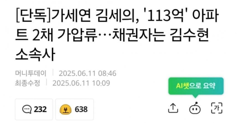 가세연 김세의 가압류 113억 지린다 작성자 정보 미오님 작성 작성일 2025.12.24 23:34 컨텐츠 정보 5 조회 목록 답글 본문 레카로 끌어오던게 돈이었네 ㅋㅋㅋㅋㅋㅋㅋㅋㅋㅋㅋㅋㅋㅋㅋㅋ 관련자료 이전 LoL MSI 곧 시작! 놓치지 마세요 작성일 2025.12.25 00:43 다음 유럽 여자운동경기 근황 작성일 2025.12.24 23:18 댓글 0 등록된 댓글이 없습니다. Select File Upload File 목록 답글