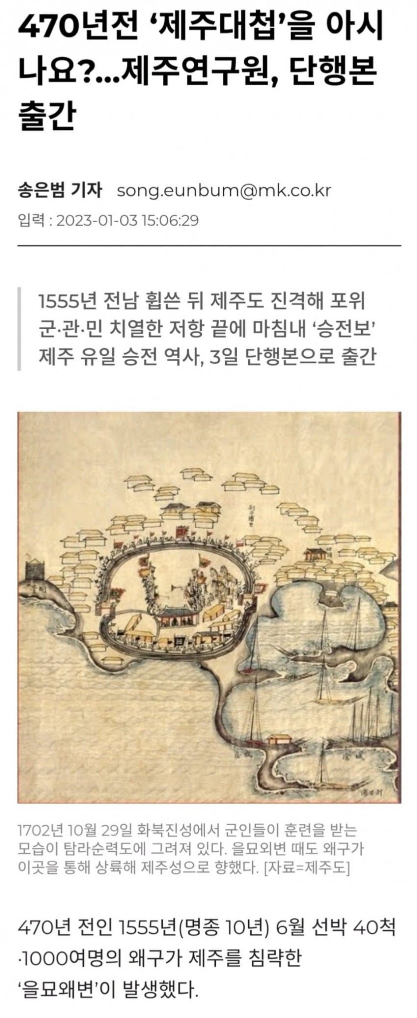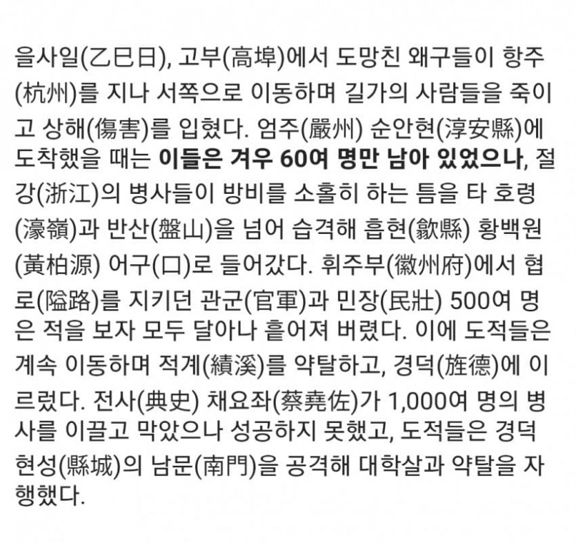 와들와들 역사서에 나오는 왜구의 전투력 작성자 정보 Haemil7 작성 작성일 2025.12.24 17:00 컨텐츠 정보 2 조회 목록 답글 본문 결국 진압은 성공했지만 고작 60명 패잔병에게 관군 300명과 장수 둘을 잃음... 대충 왜구 60명이 덤벼들자 1000명의 짱개군 쫄아서 ㅌㅌ 손으로 활도 잡는 묘기도 보여줌 관련자료 이전 [천문] 6/1 MLB 작성일 2025.12.24 17:26 다음 10년전 SBS 아침드라마 클라스 작성일 2025.12.24 16:47 댓글 0 등록된 댓글이 없습니다. Select File Upload File 목록 답글