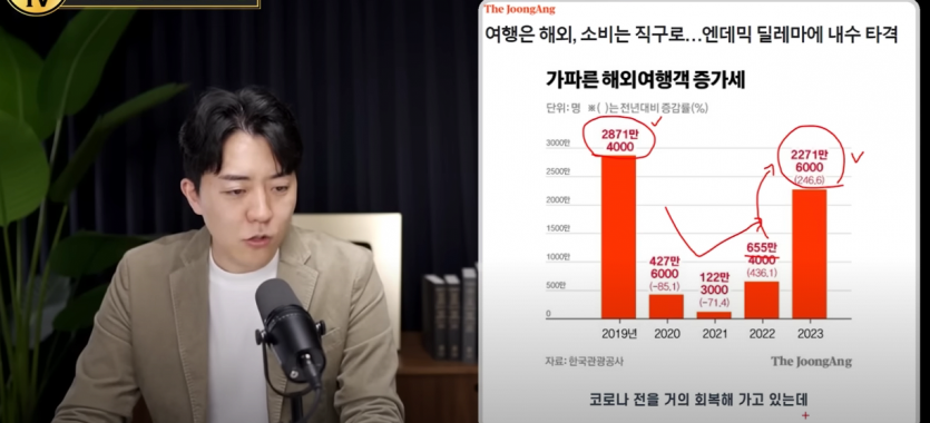 해외여행 숫자도 코로나 전 수준을 다 회복함