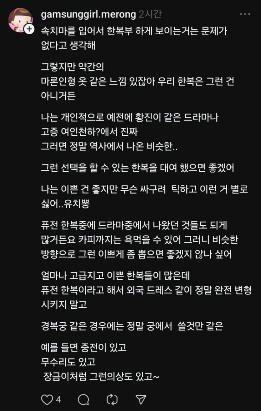 한복 아닌 한복 대여점이 싫다는 스레드촌 작성자 정보 조상님 작성 작성일 2025.11.10 04:49 컨텐츠 정보 1 조회 목록 답글 본문 관련자료 이전 픽업하러 온 오빠 차에 타고 가다가 갑자기 소리 지른 이유 작성일 2025.11.10 05:39 다음 서울에 새로 생겼다는 사진미술관 작성일 2025.11.10 04:27 댓글 0 등록된 댓글이 없습니다. Select File Upload File 목록 답글