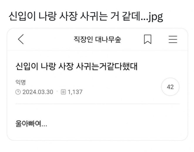 신입이 나랑 사장 사귀는 거 같데 작성자 정보 sdf23sdf 작성 작성일 2025.11.10 10:25 컨텐츠 정보 2 조회 목록 답글 본문 관련자료 이전 기요 밴쿠버생존기가 아니고 티원 고로시 특집 아닌가요 작성일 2025.11.10 10:41 다음 역투하는 삼성 이호성 작성일 2025.11.10 09:23 댓글 0 등록된 댓글이 없습니다. Select File Upload File 목록 답글