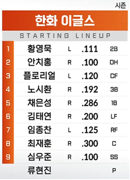 이렇게 보니까 좆칰 타선 빠따는 그래도 감개무량하네 작성자 정보 고액배터의위엄 작성 작성일 2025.11.15 09:52 컨텐츠 정보 0 조회 목록 답글 본문 2025년 3월 30일 기준과 비교하면 타자들 타율이 대부분 상승함.영묵: 0.111 → 0.231치홍: 0.100 → 0.155플로: 0.120 → 0.271시환: 0.192 → 0.232주장: 0.286 → 0.289태연: 0.200 → 0.235종찬: 0.125 → 0.167재훈: 0.300 → 0.309우준: 0.100 → 0.207 라인업 전체가 3월 말 대비 타율 상승한 모습. 물론 72억 받고 사라진 선수도 있고, 이 당시엔 현빈이도 없었음. 관련자료 이전 요즘 군대 병영식ㄷㄷ 작성일 2025.11.15 10:06 다음 원피스 어떤 의미로는 에이스보다 심각한 수준인 놈 작성일 2025.11.15 09:22 댓글 0 등록된 댓글이 없습니다. Select File Upload File 목록 답글