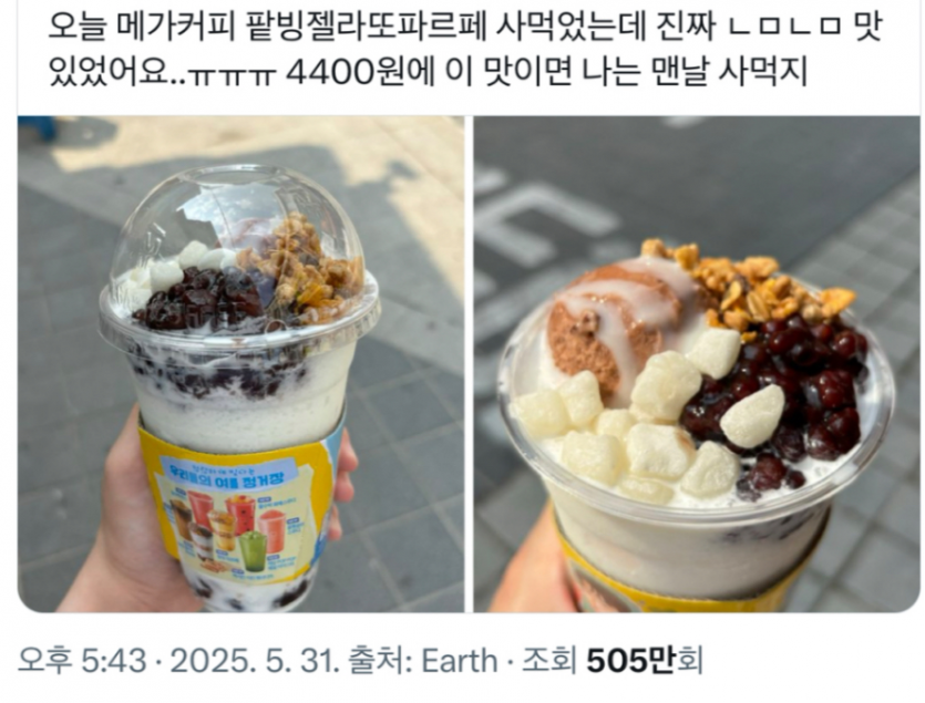 이제는 싯가로 파는 메가커피 팥빙수파르페 작성자 정보 지석진 작성 작성일 2025.11.16 22:42 컨텐츠 정보 3 조회 목록 답글 본문 정가 4400원 9,400원까지 뜀 다 다른 지점임 관련자료 이전 요즘 20대들 이거 못 사서 난리더니 가격 뭇매 작성일 2025.11.16 22:55 다음 유벤투스, 여전히 산초 영입에 집중, 맨유에 새로운 조건 제시 작성일 2025.11.16 22:23 댓글 0 등록된 댓글이 없습니다. Select File Upload File 목록 답글
