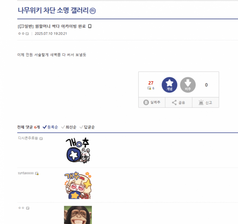 남차소갤에선 아카이빙 끝내고 민원 보낼 준비중이었는데
