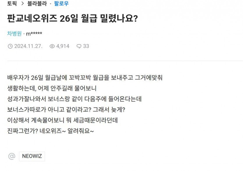 월급이 밀렸다던 국내 유명 게임회사 작성자 정보 레알무따라 작성 작성일 2025.11.19 21:26 컨텐츠 정보 4 조회 목록 답글 본문 관련자료 이전 유승준: "돈보다 내 명예가 우선" 작성일 2025.11.19 21:40 다음 현시점 AV 업계 최강자로 불리는 사람 ㄷㄷㄷ 작성일 2025.11.19 20:01 댓글 0 등록된 댓글이 없습니다. Select File Upload File 목록 답글