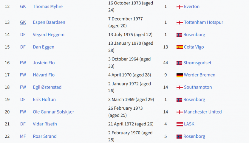 2개의 문만 고르세요노르웨이의 98 프랑스 월드컵 본선 명단 작성자 정보 프로뱃 작성 작성일 2025.11.23 02:08 컨텐츠 정보 31 조회 목록 답글 본문 최근 본선 진출 기록으로 여전히 남아있는 98년 월드컵에서의 22인 명단. (당시 대회는 명단이 22명까지) 프리미어리그 선수들이 명단의 절반에 그것도 솔샤르를 포함한 맨유 선수만 3명이 있었던 세대. 6번의 솔바켄이 그 노르웨이를 26년만의 본선 재진출을 이끌기 직전의 감독으로 이끄는중. 주전 골키퍼였던 그로다스는 정작 소속팀에서 1경기도 못뛰었다는게 흠. 관련자료 이전 손흥민, 토트넘과 결별 임박 ㅎ 사우디 491억 연봉 제안 작성일 2025.11.23 02:27 다음 국야 끝나니 작성일 2025.11.23 01:35 댓글 0 등록된 댓글이 없습니다. Select File Upload File 목록 답글