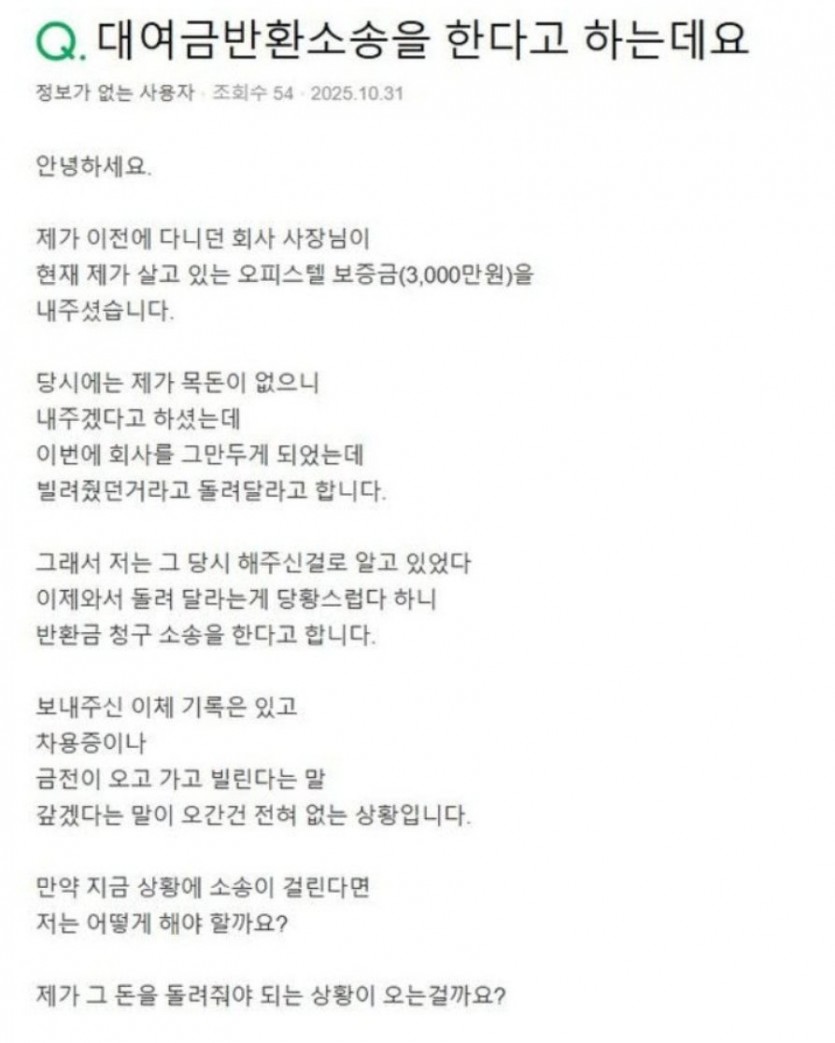사장님이 소송한다고 하니 어리둥절한 직원 작성자 정보 니에미창년 작성 작성일 2025.12.07 22:51 컨텐츠 정보 25 조회 목록 답글 본문 무슨 생각을 하면서 사는 애일까.. 관련자료 이전 야구 끝났다 작성일 2025.12.07 23:08 다음 중소가면 제일 신입들 어리둥절 하다는거 작성일 2025.12.07 21:28 댓글 0 등록된 댓글이 없습니다. Select File Upload File 목록 답글