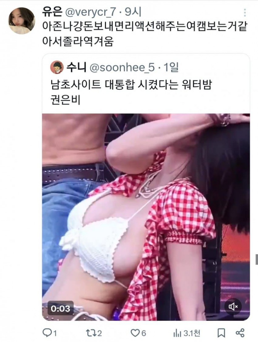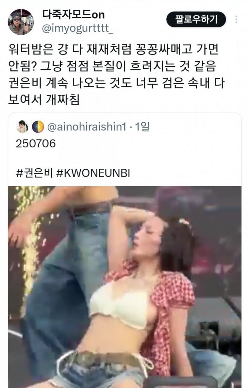 워터밤 권은비....트위터 반응..... 작성자 정보 칠순사이다 작성 작성일 2026.01.27 12:53 컨텐츠 정보 1 조회 목록 답글 본문 관련자료 이전 비가 온 후의 서울 작성일 2026.01.27 13:23 다음 카르마 당연히 므시 전패 패귀픽이겠구나 생각했었는데 온신이 있었구나.. 작성일 2026.01.27 10:58 댓글 0 등록된 댓글이 없습니다. Select File Upload File 목록 답글