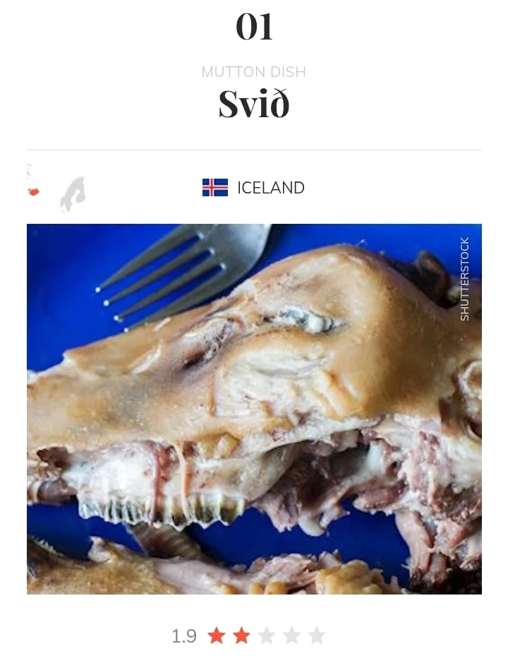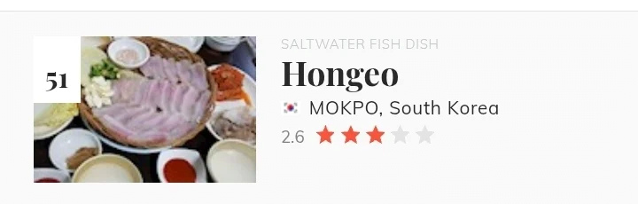 최악의 세계 음식 100선 작성자 정보 태수슈 작성 작성일 2026.01.27 19:38 컨텐츠 정보 2 조회 목록 답글 본문 맛알못 서구권 놈들이 선정한 최악의 세계 음식 100위한식도 무려 4개나 그 자리를 차지했다51위 홍어68위 엿81위 콩나물밥84위 두부전 너네가 잘하는 집을 안가봐서 그래 옆나라 일본도 39위에 우이로? 라고 하는 디저트와46위에 간모도키? 라는 두부튀김이 차지함이것도 왜 스낵인지 모르겠넼ㅋㅋ 아래는 혐주의 1위는 아이슬란드의 양머리 요리 관련자료 이전 박민영 박희순 주종혁 사기꾼들로 뭉쳤다 9월 리메이크 드라마 기대 작성일 2026.01.27 20:19 다음 게임 잘 모르는 일본 유튜버가 본 페이커의 인상 ㅋㅋㅋ 작성일 2026.01.27 17:43 댓글 0 등록된 댓글이 없습니다. Select File Upload File 목록 답글