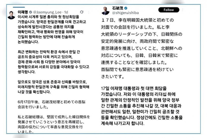 대통령 SNS 외교 현지어와 한국어 병행이 기본 된다 작성자 정보 낌지녕 작성 작성일 2026.01.28 05:56 컨텐츠 정보 1 조회 목록 답글 본문 이재명 정부가 해외 정상들과의 소통에서 상대국 언어를 함께 사용하는 디지털 외교 방식을 도입했어요. G7 캐나다 정상회의를 앞두고 이재명 대통령은 SNS 메시지를 현지어로도 작성해 외교적 존중을 보여주자”고 지시.실제로 회의 기간 동안 SNS 게시물은 모두 양국어(한국어+현지어)로 올라왔고, 일본 총리 이시바도 이에 호응해 한국어로 글을 올리며 화답했습니다. 관련자료 이전 용사와 마왕 작성일 2026.01.28 06:38 다음 맨체스터 유나이티드에서 등번호는 중요한가? 쿠냐, 래쉬포드, 캐릭으로 살펴보자. 작성일 2026.01.28 03:05 댓글 0 등록된 댓글이 없습니다. Select File Upload File 목록 답글