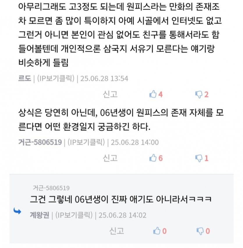원피스가 상식이냐 작성자 정보 류승범임 작성 작성일 2026.02.02 15:40 컨텐츠 정보 1 조회 목록 답글 본문 관련자료 이전 강민경의 프렌치토스트 레시피 작성일 2026.02.02 15:57 다음 몰래 한국 들어왔다가 많이 실망한듯한 일본배우 작성일 2026.02.02 15:10 댓글 0 등록된 댓글이 없습니다. Select File Upload File 목록 답글
